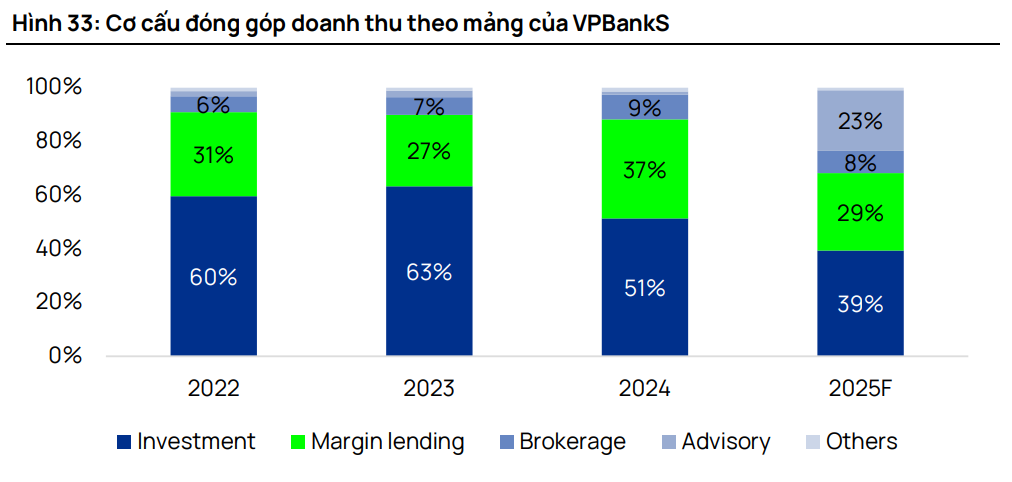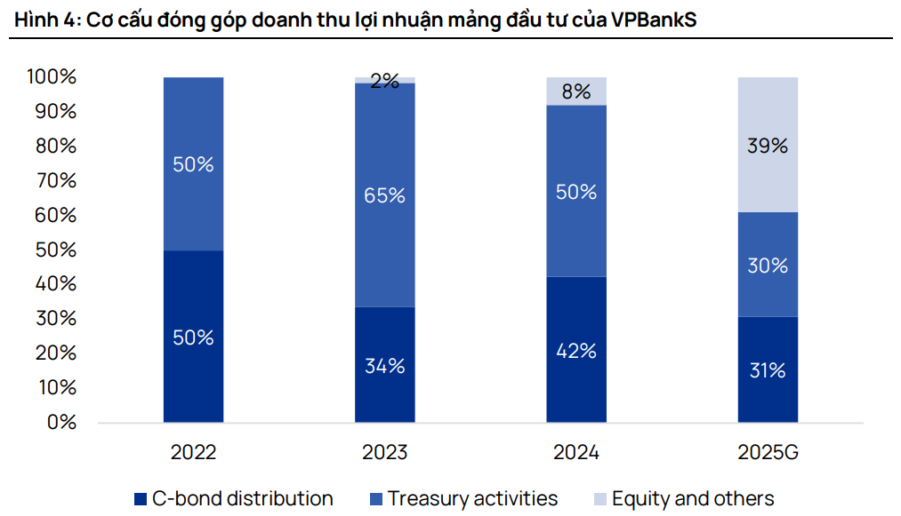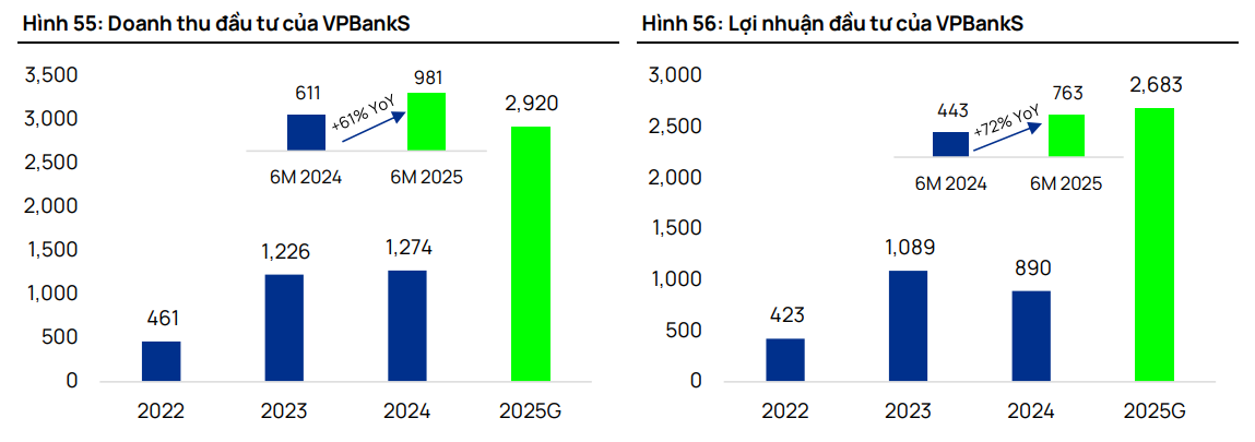 Doanh thu đầu tư tự doanh tại VPBankS dự kiến sẽ tăng trưởng đáng kể, được hỗ trợ bởi chiến lược quản lý danh mục chủ động hơn trong bối cảnh thanh khoản thị trường cải thiện, đồng thời đa dạng hóa về ngành và loại tài sản.