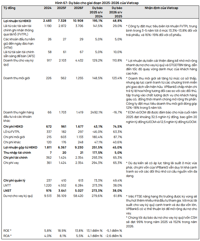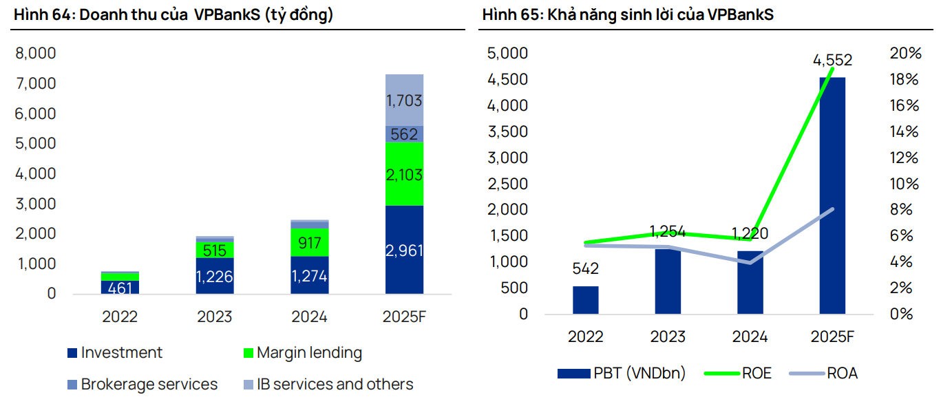 Công ty cũng tận dụng môi trường thanh khoản thị trường được cải thiện để triển khai các chiến lược đầu tư chủ động hơn, qua đó dự kiến sẽ thúc đẩy tăng trưởng doanh thu. Trong tương lai, VPBankS dự báo tỷ suất sinh lời trung bình trên tài sản FVPTL trong 3–5 năm tới sẽ duy trì ở mức hấp dẫn, với:
