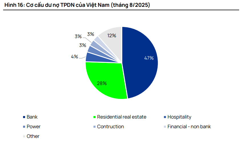 Theo dữ liệu của VIS Rating, trái phiếu ngân hàng và trái phiếu bất động sản chiếm khoảng 75% tổng dư nợ TPDN. Chúng tôi kỳ vọng những ngành này sẽ tiếp tục thúc đẩy hoạt động phát hành và duy trì một phần đáng kể thị phần trong thời gian tới.