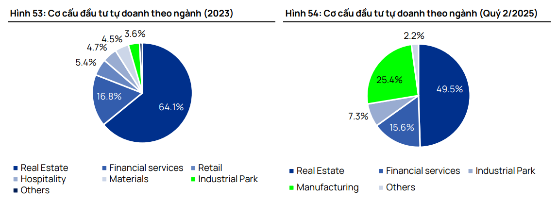 Danh mục đầu tư cũng đã ghi nhận sự thay đổi đáng kể trong phân bổ theo ngành, phản ánh định hướng chiến lược nhằm đa dạng hóa và giảm rủi ro tập trung. Tỷ trọng phân bổ vào bất động sản giảm mạnh từ 64,1% xuống 49,5%, cho thấy cách tiếp cận cân bằng hơn. Song song đó, tỷ trọng vào ngành sản xuất tăng mạnh từ mức gần như không đáng kể lên 25,4%. Những điều chỉnh này cho thấy sự dịch chuyển có chủ đích sang các lĩnh vực có triển vọng tăng trưởng rõ rệt hơn và ít chịu rủi ro chu kỳ hơn.