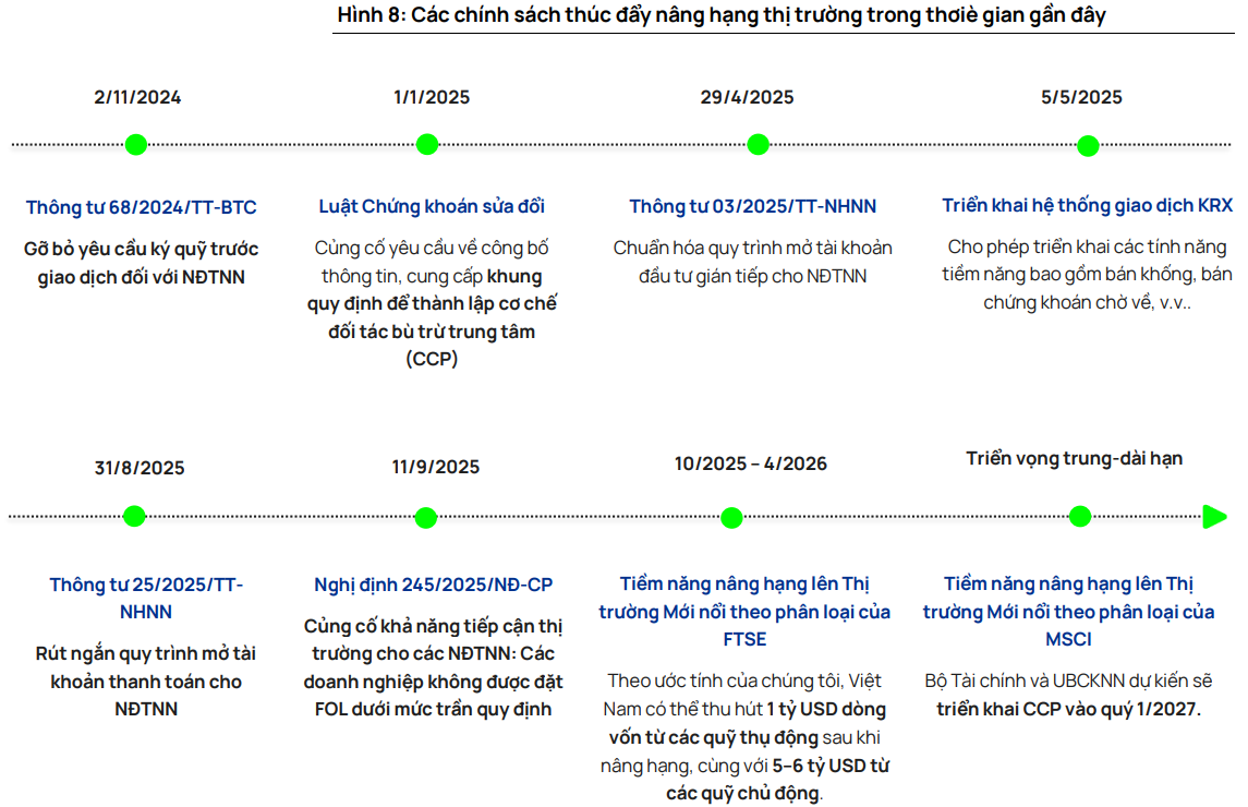 Quá trình nâng hạng thị trường theo FTSE sắp tới sẽ thu hút một lượng đáng kể dòng vốn nước ngoài. Trong năm qua, Chính phủ đã thể hiện cam kết mạnh mẽ trong việc thúc đẩy thị trường chứng khoán hướng tới Thị Trường Mới nổi theo phân loại của MSCI và FTSE, triển khai một loạt các cải cách quy định và sáng kiến chính sách, tạo thành nền tảng cốt lõi cho quá trình nâng hạng thị trường của Việt Nam.